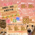 10月!!🎃 健康診断キャンペーン ✨開始します!!!✨ 💙アダルトコース🐈💜シニアコース🐩 ご予約が埋まってきております💦 特に土曜日に関してはご案内可能日が残り6枠となりました🙇 土曜日は早くても11月のご案内にな…